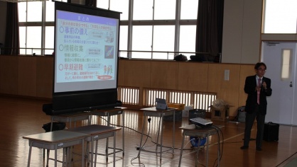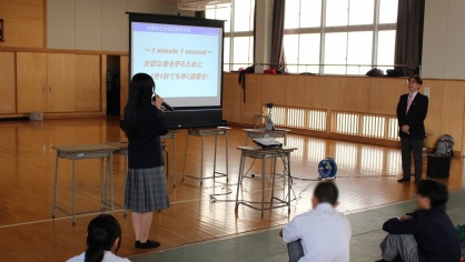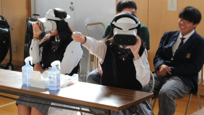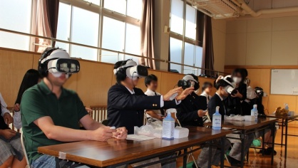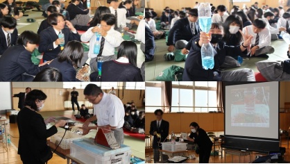 2025-10-31 NEWお知らせ 防災出前講座【普通科3年生】を実施しました。 10月30日(木)に3年生を対象に防災出前講座を実施しました。 今年度も中部地域づくり協会より講師をお迎えし、「災害から大切な人の命を守るために~過去の水害から学び、備えよう~」をテーマに講義をしていただきました。浸水体感VRによる浸水疑似体験やAI語り部への質問、簡単な実験をとおして、災害被害やメカニズムについて学ぶことができました。