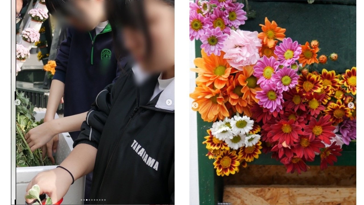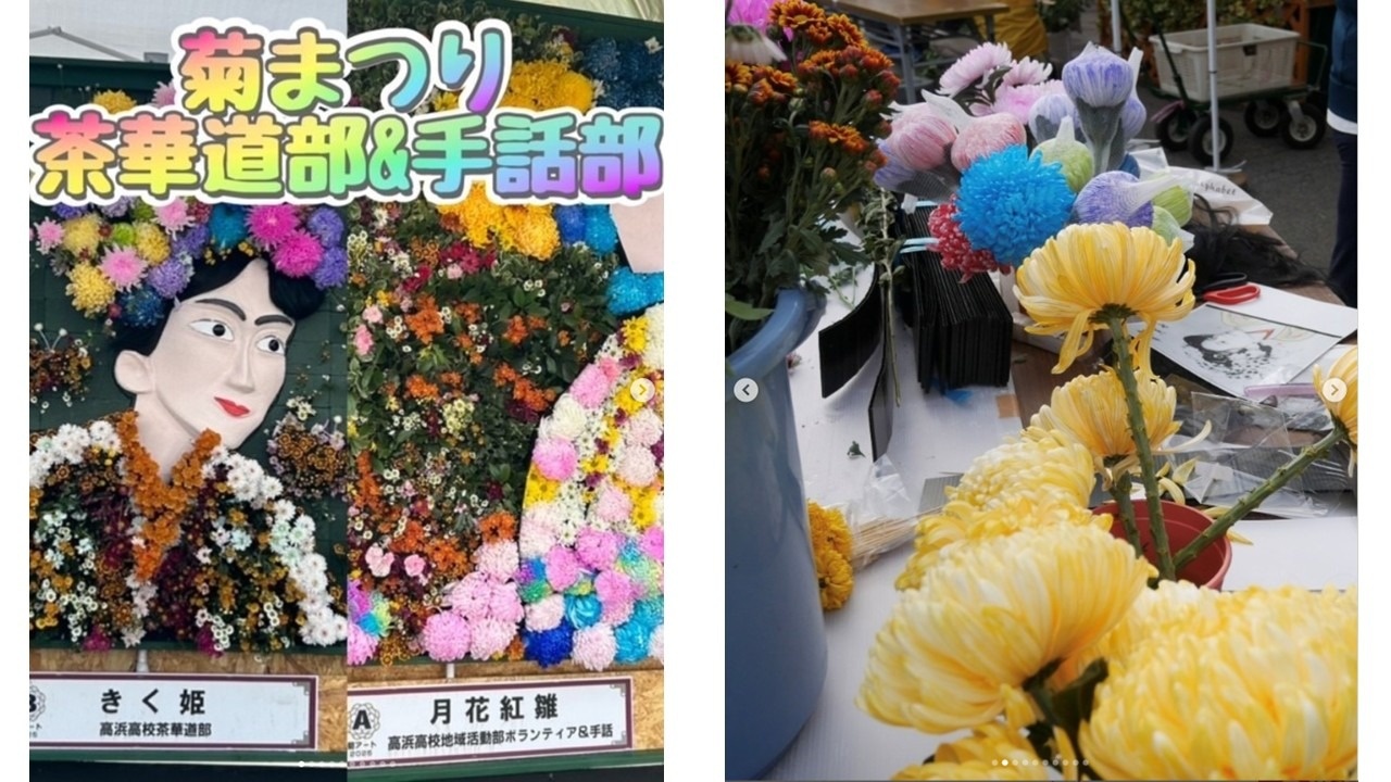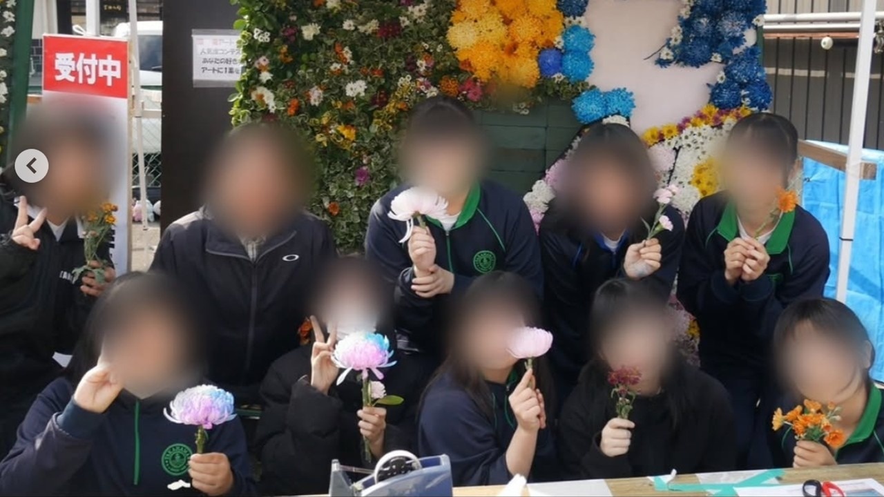 2025-11-19お知らせ 茶華道部・手話部 菊まつりに参加しました。 茶華道部と手話部が菊まつりで展示される「菊アート」を制作しました。 色とりどりの花を用意していただき、各部が考えたデザインに合わせて花を挿していきます。 「こんなにたくさんのお花を触るのは初めて」「お花屋さんもいいなって思っちゃった」など、楽しそうに制作していました。 吉浜駅周辺で11月16日まで菊まつり開催中です。 ぜひこちらの菊アートもご覧ください。