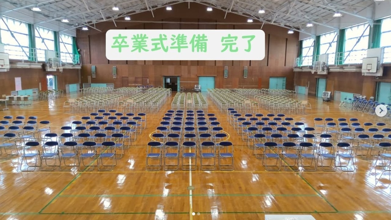 2026-02-26お知らせ 卒業証書授与式の準備をしました。 本校では来週の月曜日、3月2日に卒業証書授与式が行われます。昨日・本日でたくさんの生徒・教員で準備を行いました。写真はみなさんは見ることのできない舞台上からの景色です。とても綺麗に椅子が並んでいます。協力してくれた皆さんありがとうございました。そして、2枚目の写真は体育館のすぐ後ろ、福祉棟の横にある梅の木です。3年生のみなさんの卒業を祝うかのように満開の花が咲いています。3月2日に時間があればぜひこの梅の下で写真を撮ってみてください。 3年生のみなさんの晴れ姿を見るのを楽しみにしています。
